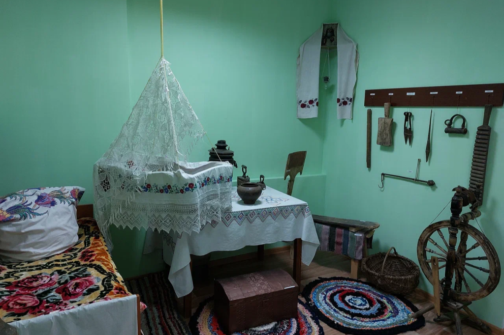 В экспозиции представлены традиционная одежда, обувь, посуда, керамические и кузнечные изделия, образцы дворянской мебели. Посетители могут познакомиться с материалами о замечательных земляках Красногвардейского района, в том числе о выдающемся ученом, академике Е.Н. Павловском.