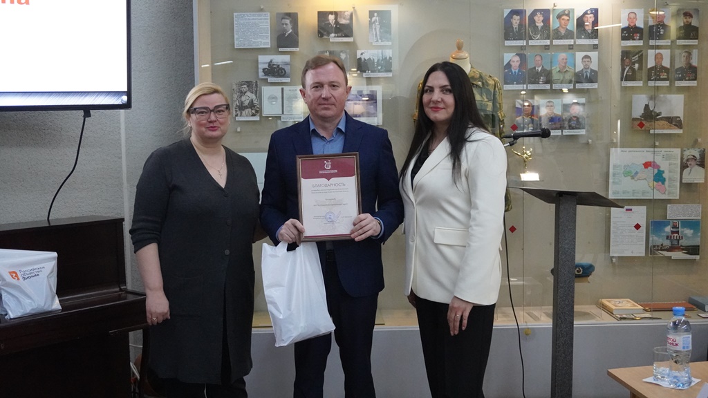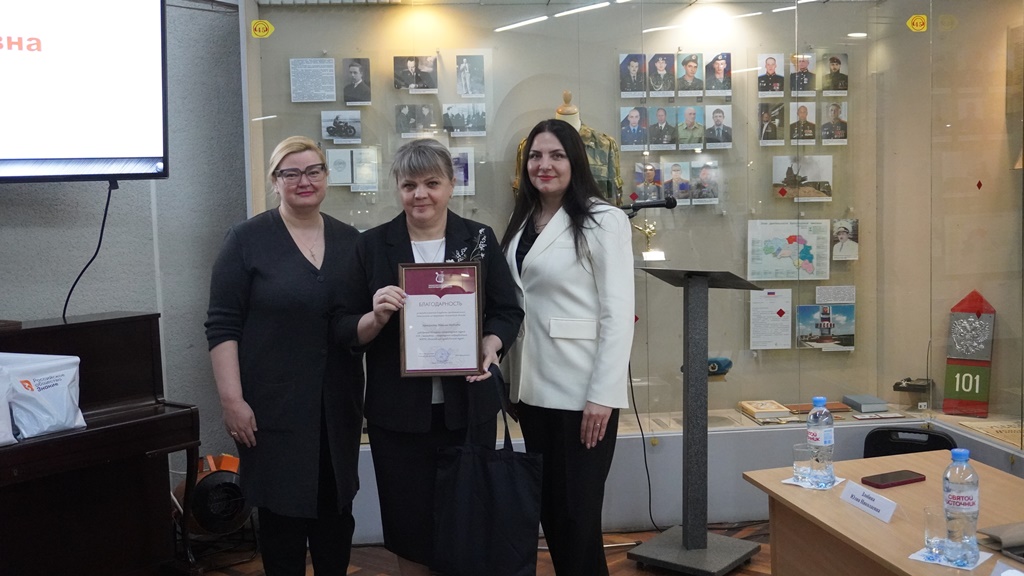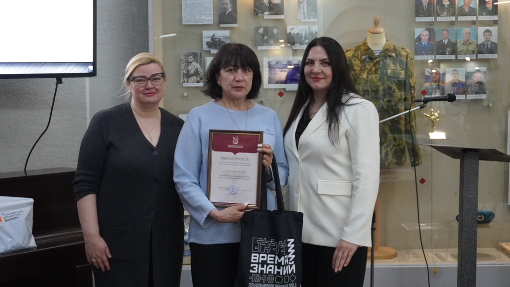 Директор филиала Российского общества «Знание» в Белгородской области Людмила Анатольевна Русинова поздравила сотрудников и коллективы муниципальных музеев, награждённых за активное участие в развитии просветительской деятельности, и вручила благодарности и памятные подарки.