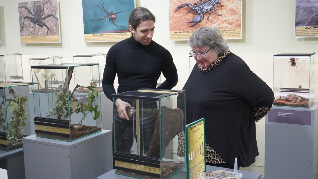 Автор выставки – Максим Гончаров, арахнолог и энтомолог, провёл познавательную экскурсию, где подробно рассказал о каждом виде пауков и скорпионов.