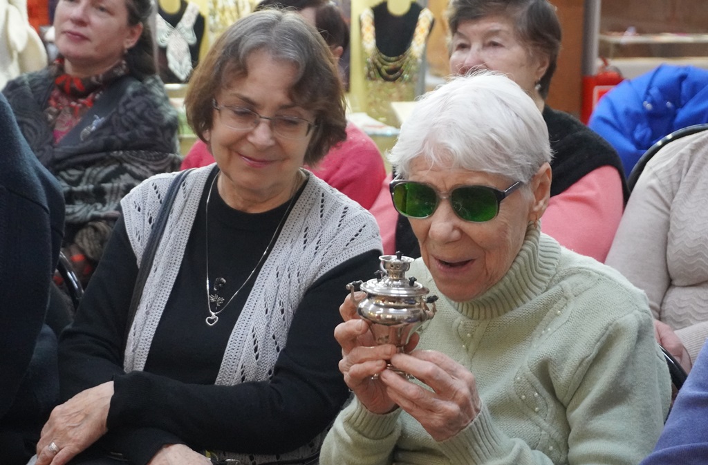 Незрячие и слабовидящие посетители узнали об истории самовара – одного из символов русского быта, домашнего очага и уюта, о наиболее известных самоварных династиях XIX – нач. ХХ веков, а также о традициях чаепития на Руси в разные периоды времени, познакомились с экспонатами для тактильного ознакомления, посвящёнными чаепитию.