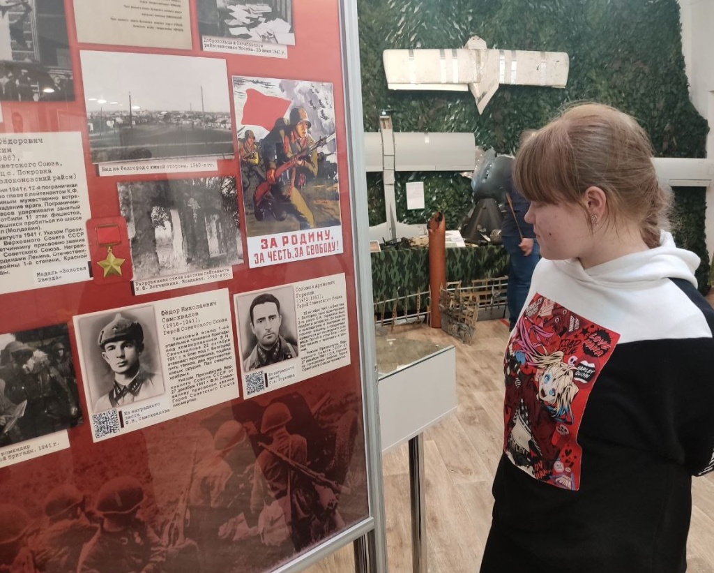 Представленные материалы выставки позволяют погрузиться в атмосферу героических сражений Великой Отечественной войны: битвы за Москву, снятия блокады Ленинграда, Курской битвы, форсирования Днепра, битвы за Берлин и узнать о подвигах воинов Красной Армии, удостоенных высокого звания «Герой Советского Союза».