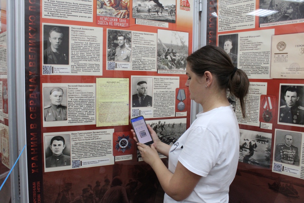 Выставка снабжена QR-кодами с информацией о подвигах белгородцев, удостоенных звания Героя Советского Союза и интерактивной составляющей.