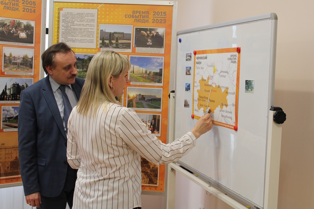 Материалы выставки также знакомят с развитием Чернянского района.